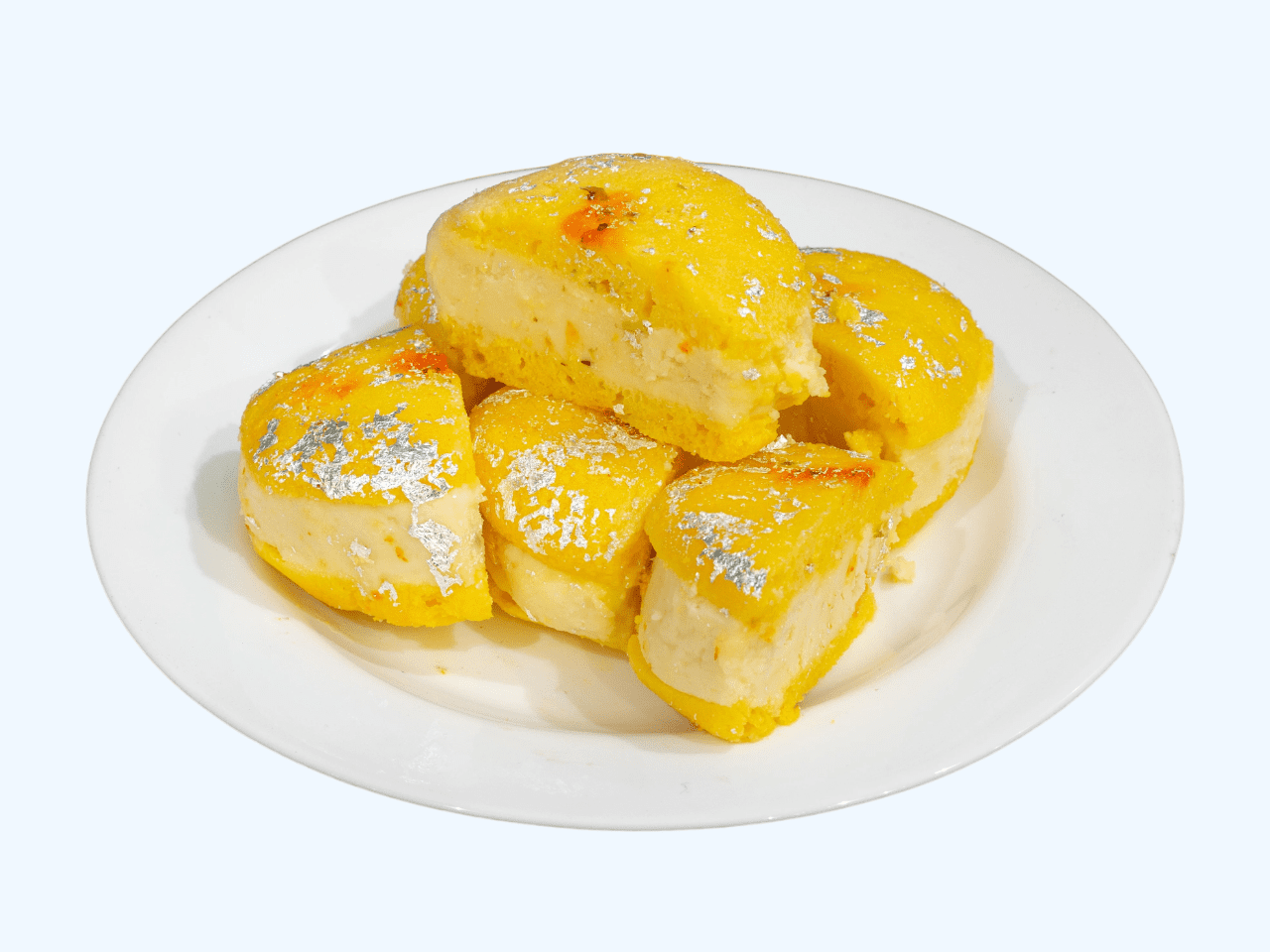 Indulge in the indulgence of Malai Sandwich, a delectable treat. Two layers of cham cham, infused with flavorful smooth malai, adorned with pistachios and cashews. Enjoy at Jodhpur Sweet Home and Bakers.